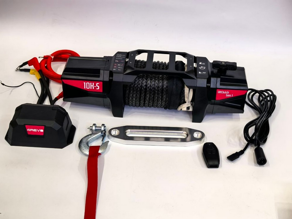 Лебедка автомобильная 4REVO 10K-S 12V (синтетический трос). Тяговое усилие 4536 кг. Комбинированный пульт