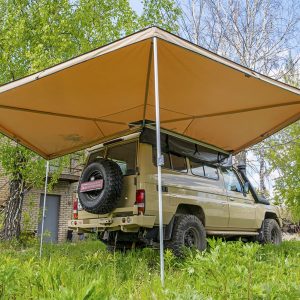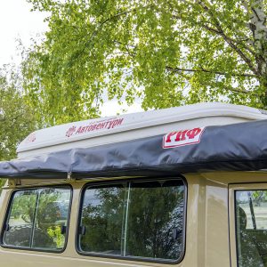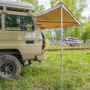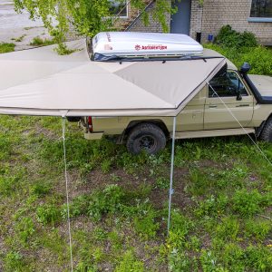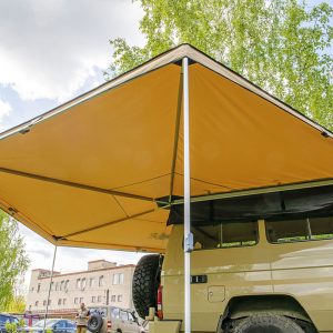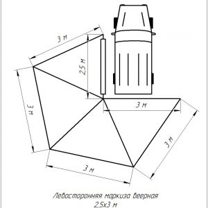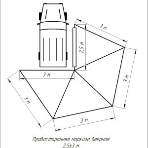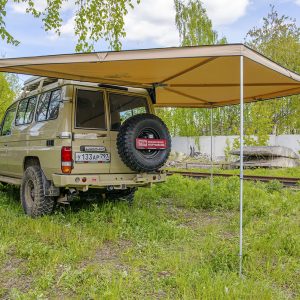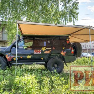 Описание Автомобильный тент-маркиза размером 2,5 на 2 метра. Жестко крепится к кузову автомобиля или автомобильному багажнику, удобно и быстро разворачивается в походное положение. Отлично защищает от прямых солнечных лучей или…